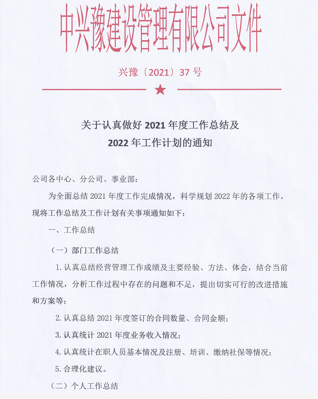 關(guān)于認(rèn)真做好2021年度工作總結(jié)及2022年工作計劃的通知