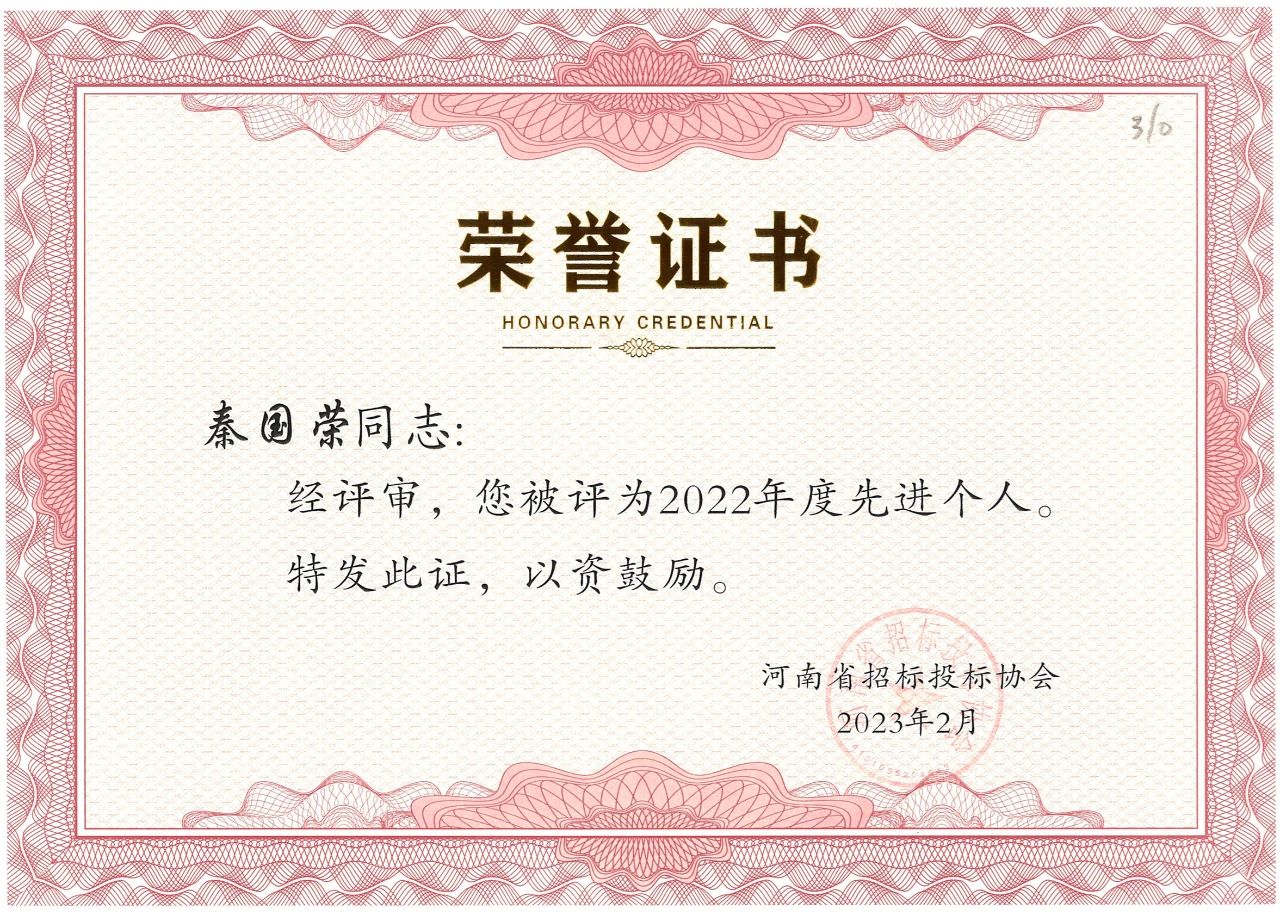 近日,河南省招標(biāo)投標(biāo)協(xié)會(huì)公布了“河南省招標(biāo)投標(biāo)協(xié)會(huì)關(guān)于表彰2022年度先進(jìn)會(huì)員單位、先進(jìn)個(gè)人的決定”。我公司榮獲2022年度先進(jìn)會(huì)員單位榮譽(yù)稱號(hào),八位同志獲得先進(jìn)個(gè)人的榮譽(yù)。