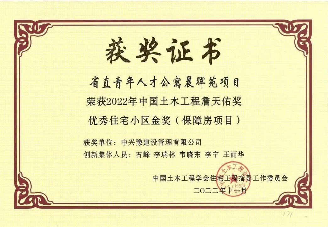 日前,2022年度中國土木工程詹天佑獎優(yōu)秀住宅小區(qū)金獎?wù)浇視?,?jīng)過推薦申報、資格審查、專業(yè)組初評、終審會議評審、詹天佑大獎指導(dǎo)委員會審核以及公示等評選程序,共有38項土木工程領(lǐng)域的杰出代表性工程獲獎。中興豫建設(shè)管理有限公司監(jiān)理的河南省省直青年人才公寓晨暉苑項目榜上有名。