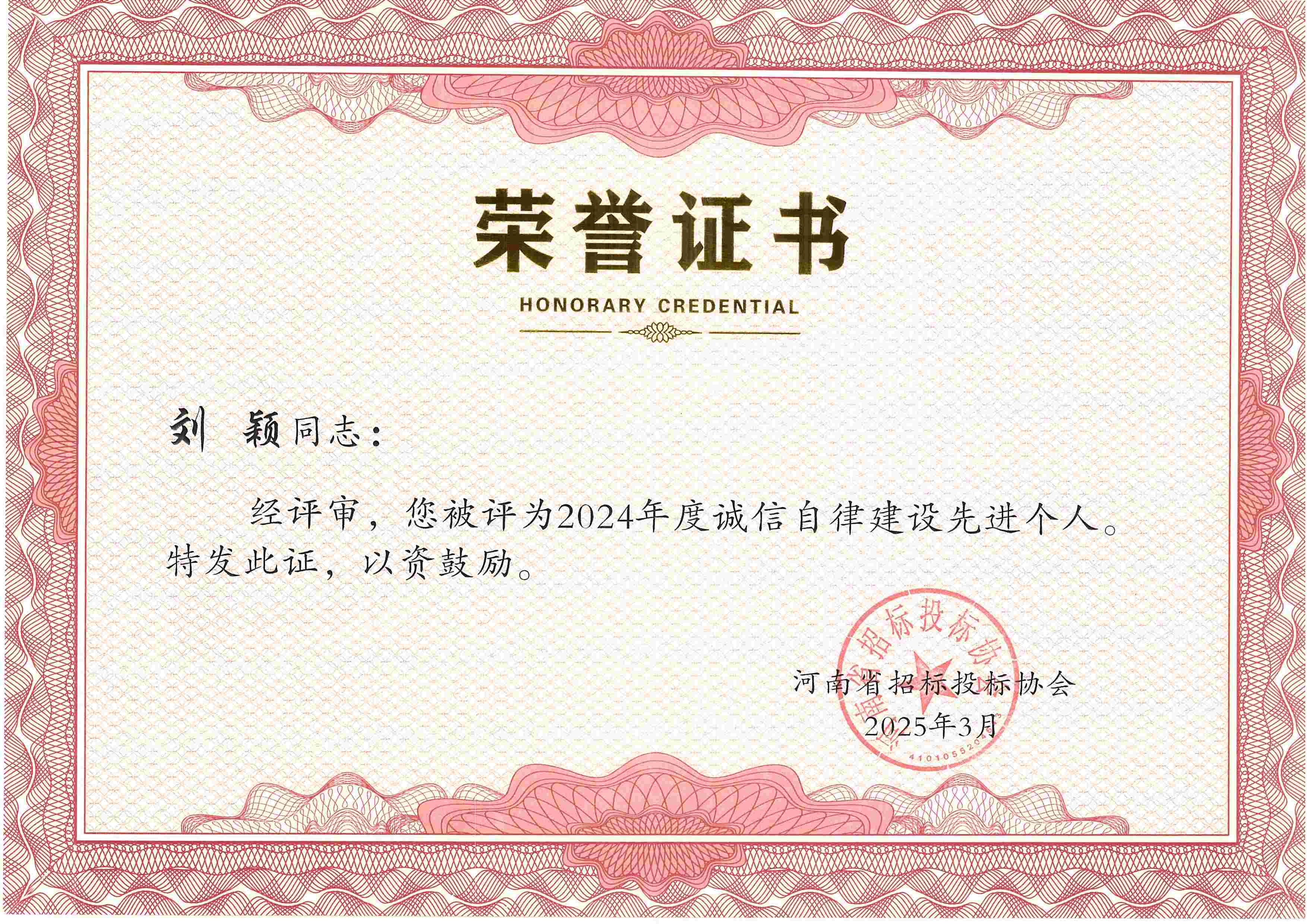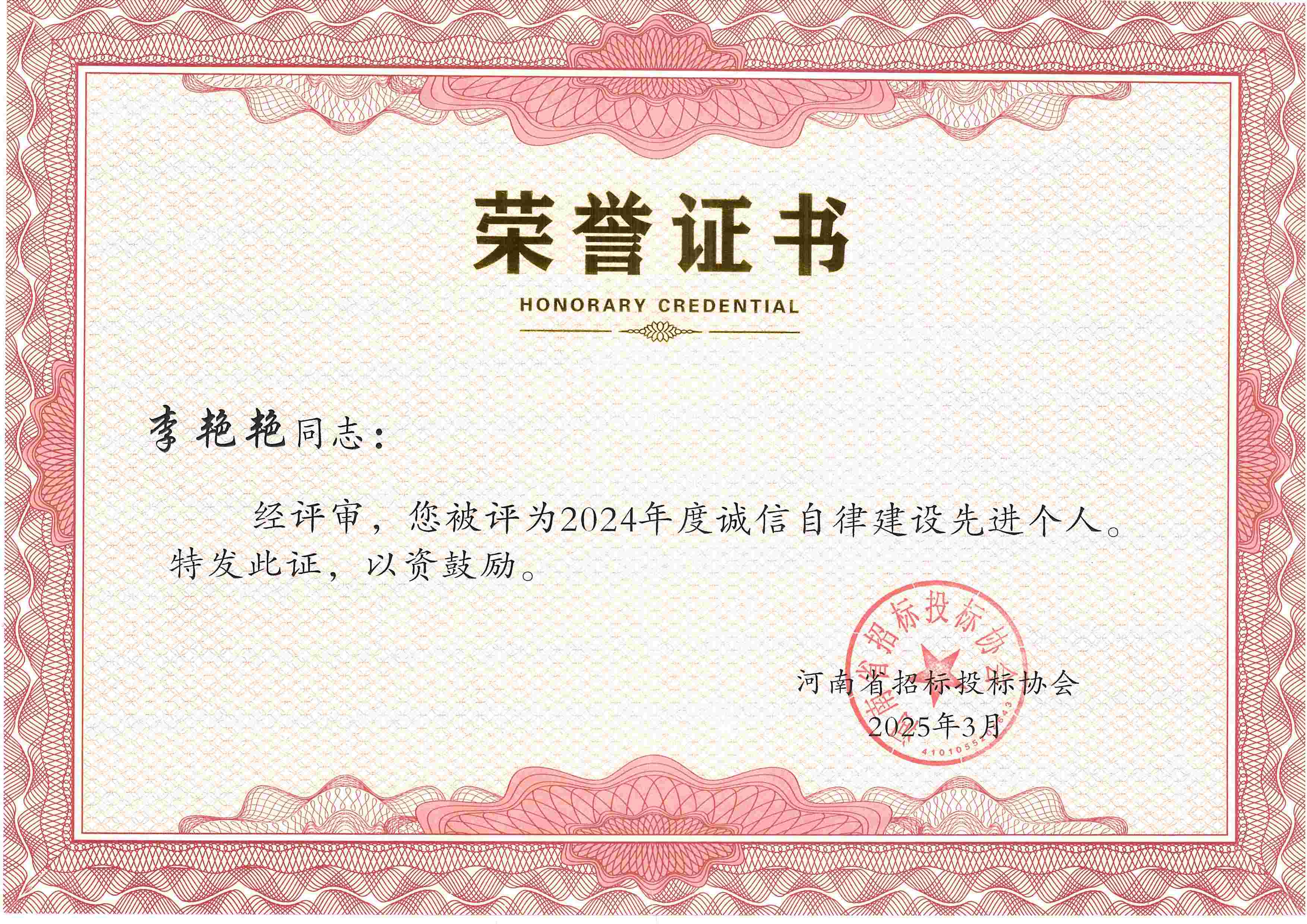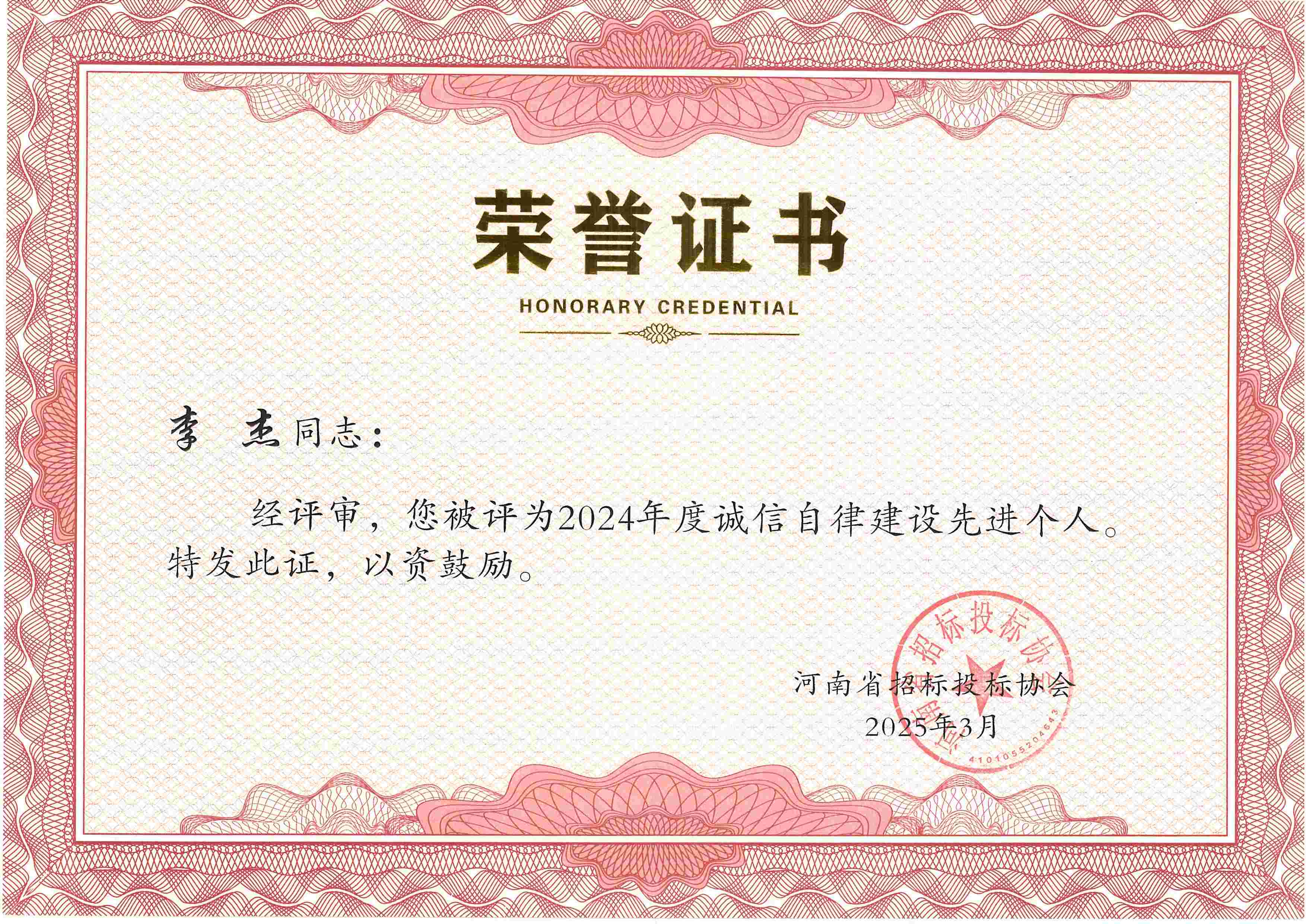近日,河南省招標(biāo)投標(biāo)協(xié)會發(fā)布關(guān)于表彰2024年度誠信自律建設(shè)先進(jìn)單位、先進(jìn)個人的決定。其中,中興豫建設(shè)管理有限公司榮幸入選“2024年度誠信自律建設(shè)先進(jìn)單位”。