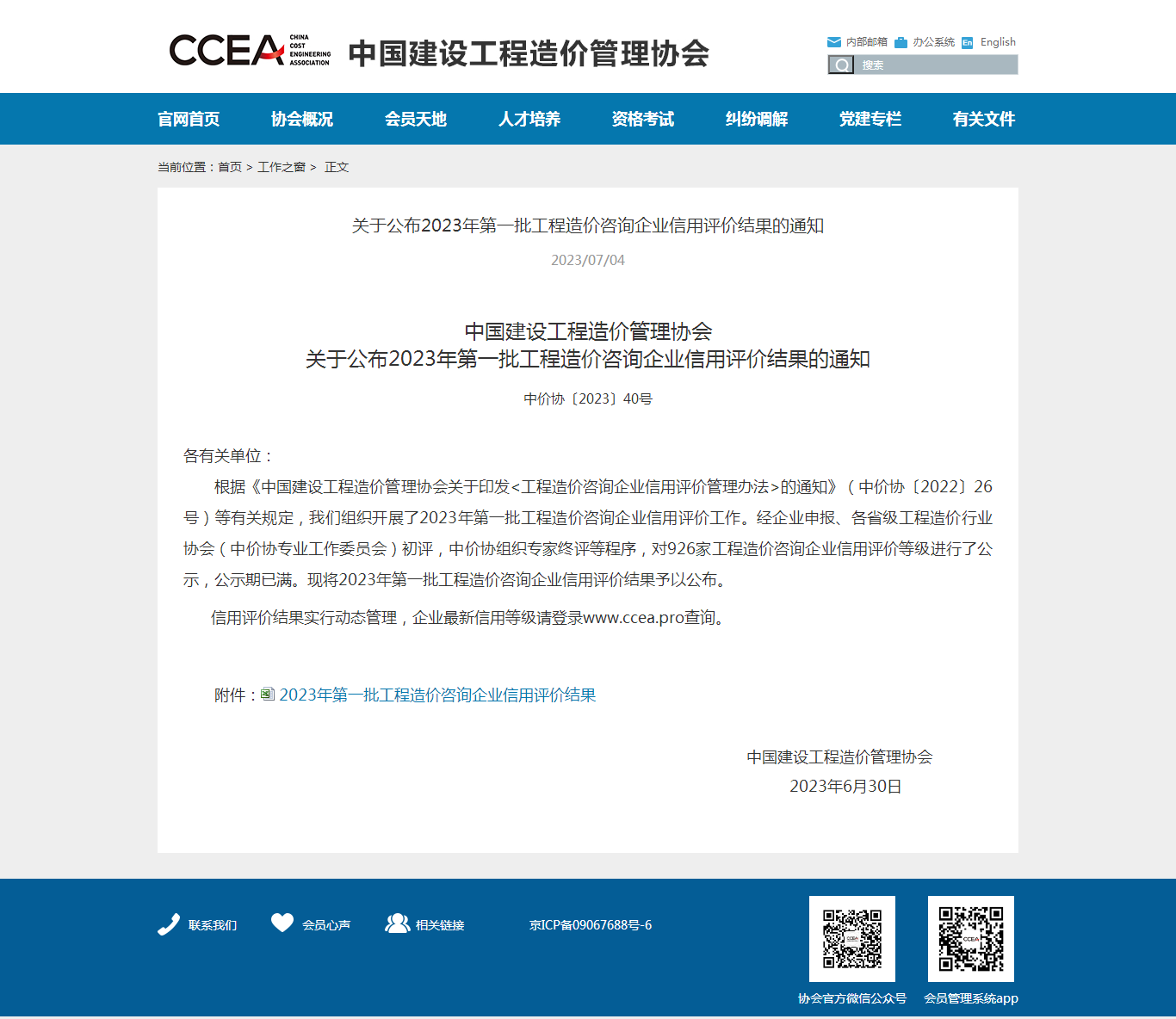 7月4日,中國建設(shè)工程造價管理協(xié)會發(fā)布關(guān)于公布2023年第一批工程造價咨詢企業(yè)信用評價結(jié)果的通知,經(jīng)企業(yè)申報、各省級工程造價行業(yè)協(xié)會初評,中價協(xié)組織專家終評等程序,中興豫建設(shè)管理有限公司榮獲中國建設(shè)工程造價管理協(xié)會信用評價AAA級!