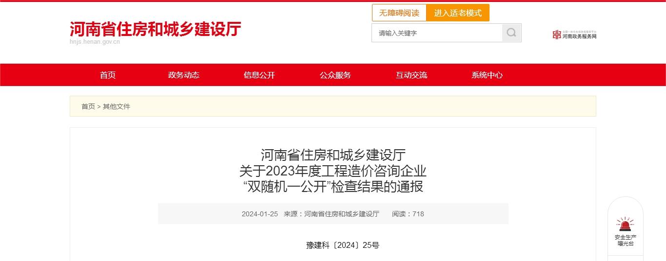 根據(jù)2023年度“雙隨機(jī)、一公開”年度計(jì)劃安排,我廳自去年10月16日起對(duì)全省工程造價(jià)咨詢企業(yè)開展了“雙隨機(jī)、一公開”抽查,現(xiàn)將檢查結(jié)果通報(bào)如下: