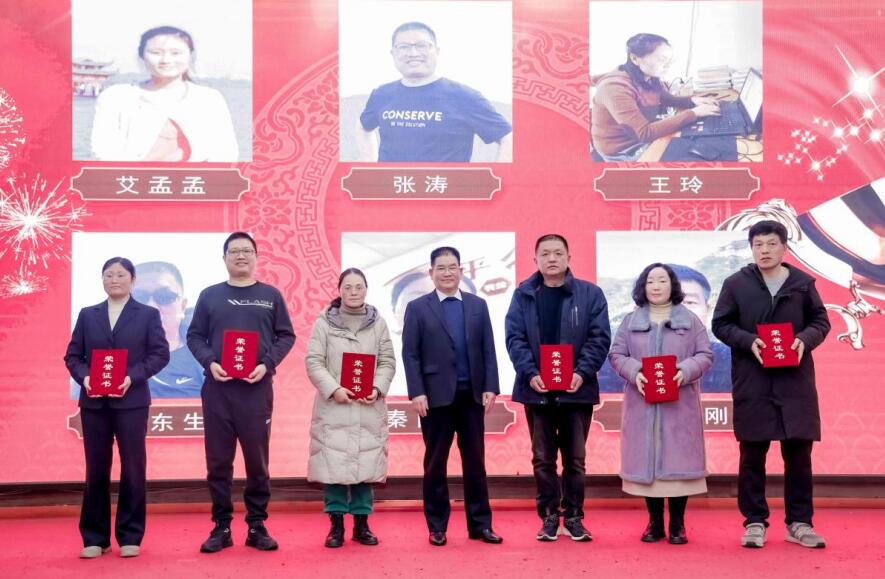 在熱烈的掌聲中,公司董事長(zhǎng)劉秒向先進(jìn)集體代表頒獎(jiǎng),公司總裁李瑞林向先進(jìn)工作者代表頒獎(jiǎng)。