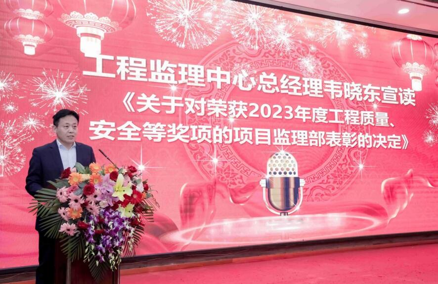 隨后,工程監(jiān)理中心總經(jīng)理韋曉東宣讀《關(guān)于對(duì)榮獲2023年度工程質(zhì)量、安全等獎(jiǎng)項(xiàng)的項(xiàng)目監(jiān)理部表彰的決定》。