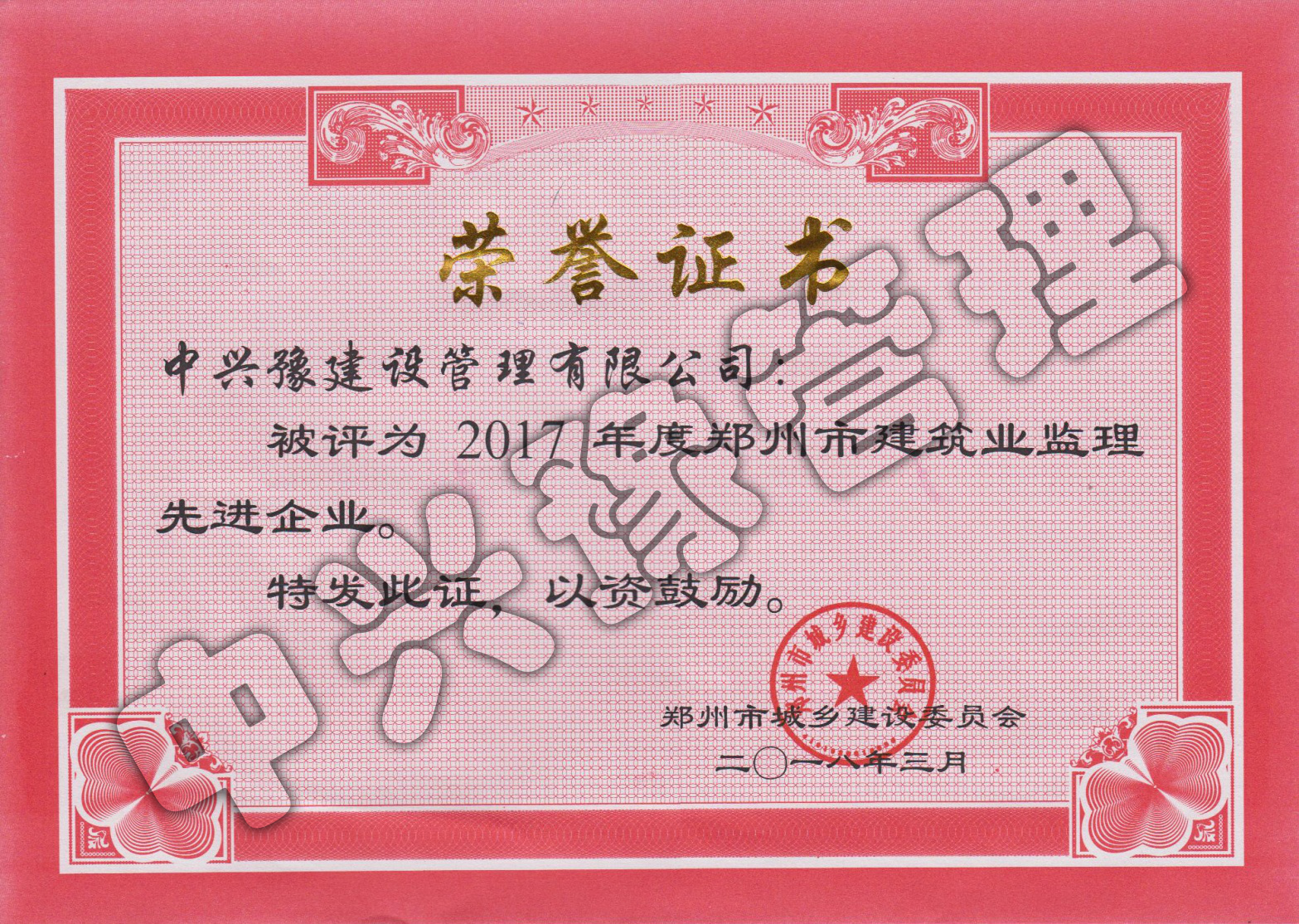 2017年度鄭州市先進監(jiān)理企業(yè)-公司榮譽