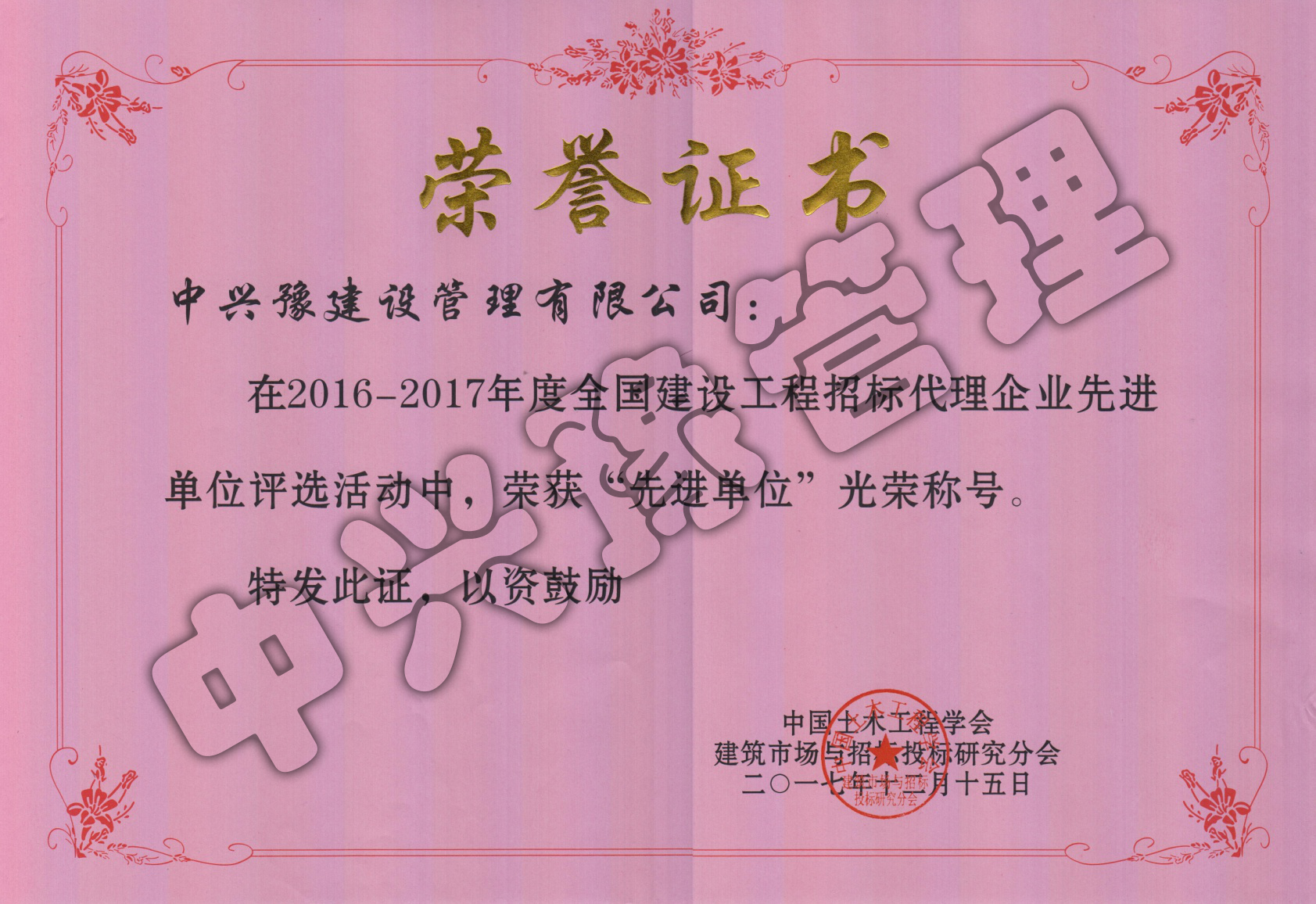 2016-2017年度全國(guó)招標(biāo)代理企業(yè)先進(jìn)單位-公司榮譽(yù)
