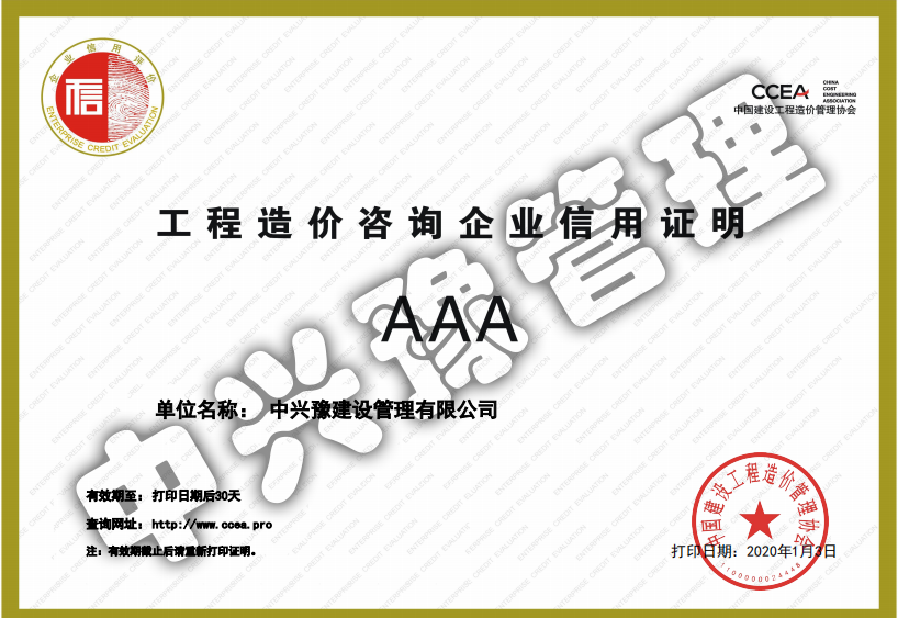 中價協(xié)頒發(fā)的工程造價咨詢信用AAA級企業(yè)-公司榮譽(yù)